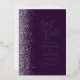Le bord gauche de cet élégant mariage moderne, à l'exception de la carte de date, comporte une bordure en faux parties scintillant argent. Le texte personnalisable combine l'écriture manuscrite en papier argenté, les polices en cuivre et en italique sur un arrière - plan violet foncé. L'envers est assorti d'un design violet et argenté.