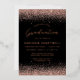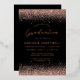 Cette invitation chic à la fête de graduation présente les bordures haut et bas de la parties scintillant en or rose faux sur un arrière - plan noir Le mot "Graduation" apparaît dans le script d'écriture manuscrite en feuille d'or rose réel. Customisez le rose feuille d'or sans serif texte avec le nom du diplômé et les détails du parti.