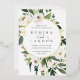 Notre faire-part de mariage White Peony entoure vos détails du jour de mariage avec un cadre rond de verdure aquarelle peinte, feuillage botanique et fleurs de roses et de pivoines blanches, s'enclenche en haut à gauche pour un look frais et moderne. La finition en feuille d'or complète la recherche d'une finition luxueuse.