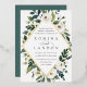 Notre faire-part de mariage White Peony entoure vos détails de mariage avec un cadre géométrique moderne de verdure aquarelle peinte, feuillage botanique et fleurs de roses et de pivoines blanches. La finition en feuille d'or complète le design pour une finition luxueuse.
