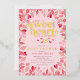 Little Sweetheart Girls Baby shower Real Foil Invitation avec un cadre de coeur feuillu rose et rouge avec l'amour dans une police moderne. Retournez notre douce invitation pour voir un retour de coordination.