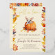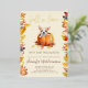 Cette mignonne carte d'invitation au baby shower présente une illustration rustique d'un citrouille avec un mignon chiot entouré de feuillage d'automne et de feuilles en feuille d'or. L'invitation dit "Tombe amoureux de bébé......" vous permettant d'ajouter le nom de famille de votre bébé. Parfait pour un baby shower neutre pour un garçon ou une fille pendant l'automne et la saison de Thanksgiving.