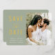 Invitation En Aluminium Photo Moderne Sage Vert Script Enregistrer La Date
