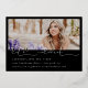 Écriture de fin d'études, en feuille. Graduation 4 faire-part photo/invitation. Photo unique au dos avec couleur arrière - plan noire et détails de l'invitation de célébration.