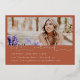 Écriture de fin d'études, en feuille. Graduation 4 faire-part photo/invitation. Photo unique sur le dos avec couleur arrière - plan orange rouille et détails de l'invitation de célébration.
