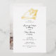 Coquillages simples en feuille d'or avec calligraphie et polices classiques sur simple invitation frontale. Reverse à l'aquarelle texture de plage de sable avec des tons brun terreux. Cette version a un coquillage de conque en haut. Le texte est noir, mais il est personnalisable en fonction de la couleur et du style, ainsi que de l'option de personnalisation. Vous préférez une autre couleur pour les lettres ? Utilisez simplement un sélecteur de couleur dans l'outil de conception.