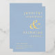 Poudre Personnalisée Blue Gold Ampersand Wedding Enregistrer La Date Foil Invitation.