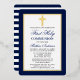 Invitation En Aluminium Première Sainte Communion Croix Bleu Stripes Gold