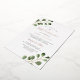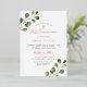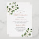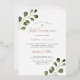 Invitation minimaliste moderne pour garçon ou fille Première communion véritable feuille d'or rose avec aquarelle eucalyptus verdure feuillage feuilles branches et croix dorée.
