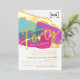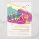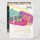 Brush art abstrait en rose, violet et bleu avec feuille d'or ou votre propre feuille couleur modèle photo affaires 40e anniversaire invitation à la fête. Personnalisez avec vos propres détails de fête d'anniversaire, et une photo de votre entreprise ou de vos produits au contraire. © Design original par Sarah Trett pour www.mylittleeden.com sur Zazzle.