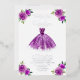 Élégante robe violette chaude, invitation à la fête du 15e anniversaire fleurie.
