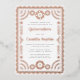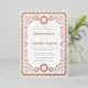 Cette invitation de quinceañera moderne présente un cadre classique blanc arrière - plan, d'inspiration papel picado en feuille d'or rose surélevée avec une typographie élégante. "Quinceañera" et le nom de votre enfant sont également en papier peint. Ce design est festif, féminin et élégant ! Les couleurs arrière - plan et texte sont entièrement personnalisables. Le papier peint sur cette carte brille vraiment et ajoute cette touche spéciale à votre occasion spéciale !