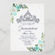 Quinceanera Invitation Tiara Fleurs Turquoises Argent Foil Invitation