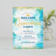 Invitation En Aluminium Quinceañera Turquoise Aquarelle Couronne or réel