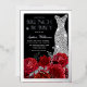 Red Roses & Silver Foil Black Bridal Shower Foil Invitation