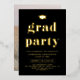 famille d'Invitations et amis à votre diplôme avec cette feuille d'or personnalisable pressé l'invitation de la grande fête. Il présente une typographie rétro et audacieuse sur un arrière - plan noir Personnalisez cette invitation de graduation de feuille d'or en ajoutant les détails de votre événement. Cette invitation moderne à la remise des diplômes est disponible dans d'autres couleurs de papier peint.