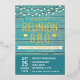 Ce barbecue familial annuel BBQ rustique bleu vert dispose d'un arrière - plan en bois avec des lampes à cordes et des grillades. Ce design d'invitation est parfait pour les soirées barbecue en famille. Profitez de votre barbecue !