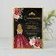 Invitation En Aluminium Robe Florale Bourgogne Noir Quinceanera Or