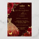 Invitation En Aluminium Robe rouge or papillon floral Quinceanera