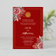 Ce faire-part de mariage chinois moderne est doté d'une véritable feuille d'or double symbole de bonheur et d'aquarelle peinte fleurs roses sur un arrière - plan rouge. Avec un texte chinois traditionnel à l'envers.