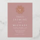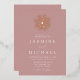 Faites scintiller votre grand jour avec notre Rose et Faire-part de mariage Gold Rose Snowflake Dusty. Ce design étonnant présente un flocon de neige en feuille d'or rose audacieux au sommet d'un arrière - plan rose poussiéreux. Les couples peuvent personnaliser avec leur nom et les détails mariages en lettrage serif blanc élégant avec accents calligraphie. Parfait pour les mariages modernes d'hiver, de vacances et de Noël, cette invitation ajoute une touche de luxe à votre fête.