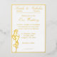 Il s'agit d'un faire-part de mariage de 5' x 7'', montré en blanc élégant avec des accents roses en feuille d'or. Il s'agit d'une véritable garniture en feuille italienne, disponible en or, argent et or rose. Toutes les oeuvres d'art et le texte sur le devant sont des feuilles, y compris le nom de la mariée et du marié et "Notre Mariage", un design rose, une ligne horizontale, le coeur fantaisiste et le contour. Le revers est réalisé en encre couleur pour compléter le papier avant, et comprend un motif "Notre journée spéciale", avec des détails sur le mariage.