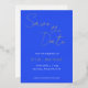 Mariage simple, feuille d'or Enregistrer la carte Date avec un script blanc et stylisé sur l'arrière - plan de couleur bleu royal. Modifiez les noms, la date et l'emplacement avec vos propres informations de mariage. Modifiez la couleur du papier peint si vous le souhaitez. La couleur Arrière - plan peut également être modifiée pour correspondre à votre jeu de couleurs mariage.