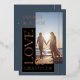 Invitation En Aluminium Royal Blue Gold Photo Mariage Amour et Gratitude