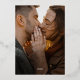 Célébrez votre mariage de automne avec cette invitation à la photo Rustique de l'automne Marsala Floral. Fleurs d'aquarelle et feuillage en marsala, bordeaux, violet, orange et marron encadrent vos détails avec une bordure brillante en feuille d'or. Le dos présente votre photo fiançailles verticale à fond de sang, en ajoutant une touche personnelle. Parfait pour les mariages d'automne rustiques, boho ou élégants, cette invitation à la feuille fait partie de notre collection de mariages floraux d'automne rustiques.