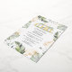 Invitation de baby shower sauvage, calme et élégante avec un animal de safari, effet doré et feuilles vertes.