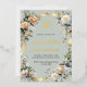 Un arrière - plan vert sage. Décoré de fleurs blanches et jaunes et d'un ruban doré. Personnalisez et ajoutez votre nom, votre âge et vos détails.