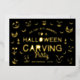 Annoncez vos invités à votre soirée de sculpture citrouille éffrayante d'Halloween et à votre invitation avec nos visages citrouilles de sculpture jack-o-lanterne effrayants. Notre design présente différents visages de sculpture citrouille effrayants qui se jettent dans l'obscurité dans la feuille d'or. Les chauves-souris et les bougies cirées ajoutent à l'effrayante invitation d'Halloween. L'envers présente les faces de sculpture citrouille éffrayant Halloween avec les détails de Halloween placés au centre. Toutes les illustrations contenues dans cette invitation éffrayante à la sculpture citrouille d'Halloween sont des oeuvres originales dessinées à la main par Moodthology. Vous pouvez customiser la taille du texte, la couleur du texte, la police et la mise en page de votre propre préférence de conception personnelle.