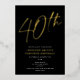 Cet invitation moderne de fête de 40 ans est doté d'un arrière - plan noir chic avec un script en feuille d'or surélevé et une typographie moderne blanche plate. Le script dit "40ème". Toutes les couleurs sont entièrement et facilement personnalisables. Vous pouvez même ajouter une photo à l'arrière ! Il suffit d'utiliser "outil de conception" dans le menu déroulant de personnalisation. Le papier peint est disponible en or, argent et or rose. Choisissez l'impression de papier à papier pour ajouter le facteur wow à vos prochaines invitations !