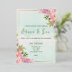 Carton d'invitation élégant avec script de signature, papier d'aluminium floral rose et blush pour mariage