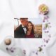 Ce mariage élégant et chatoyant, à l'exception de la carte de date, présente une superposition de typographie de script en feuille d'or moderne comme une superposition pour votre photo personnelle préférée. Il y a plus de place pour un court message au dos, vous pouvez donc inclure plus de détails sur votre mariage ou un message personnel à vos invités.