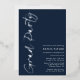 Il s'agit d'une invitation minimaliste et moderne à la remise des diplômes. Il s'agit d'une écriture manuscrite simple et élégante en bleu et blanc classique avec "Grad Party" en papier argenté. Veuillez contacter le concepteur pour toute question concernant ce design.