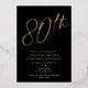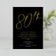 Cet invitation moderne de fête du 80e anniversaire dispose d'un arrière - plan noir chic avec un script en feuille d'or surélevé et une typographie moderne blanche plate. Le script dit "80ème". Toutes les couleurs sont entièrement et facilement personnalisables. Vous pouvez même ajouter une photo à l'arrière ! Il suffit d'utiliser "outil de conception" dans le menu déroulant de personnalisation. Le papier peint est disponible en or, argent et or rose. Choisissez l'impression de papier à papier pour ajouter le facteur wow à vos prochaines invitations !
