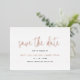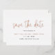 La typographie moderne Sauvegardez la carte Date avec un design simple avec "enregistrer la date" et vos noms dans une police de script élégante, imprimée en papier or rose. Un design chic et élégant pour annoncer la date de votre prochain mariage.