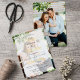 Un faire-part de mariage photo moderne et tendance double face affichant vos informations mariages sur l'une de vos photos préférées avec une superposition transparente et accentué par une typographie de script élégante en feuille d'or véritable. Facilement personnalisable avec vos détails de cérémonie mariage en gris foncé et les noms de mariée et de mariée en papier peint, pour un look romantique mais moderne et élégant. Le dos de la carte comporte une deuxième image, vos monogrammes et votre date de mariage.
