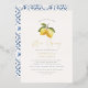 Ajoutez un peu de brillance à vos invitations à la douche nuptiale avec de l'or, de l'argent ou de l'or rose ! Ce style métallique classique et intemporel ajoutera un autre niveau à vos invitations. Célébrez la future mariée avec cette élégante et moderne invitation à la douche nuptiale sur le thème du citron. Le dessin comporte une aquarelle peinte à la main illustrant deux citrons et des fleurs de citrons suspendus à une branche d'arbre, avec "Elle a trouvé sa serpe principale", écrit ci-dessous en papier peint. Avec une typographie classique et élégante et une touche moderne de calligraphie manuscrite, cette invitation chic à la douche nuptiale en aquarelle est le parfait mélange d'intemporel et contemporain, rustique et minimaliste. Au fond de cette invitation principale à la douche nuptiale, les carreaux bleus italiens apportent une touche de charme méditerranéen. Des invitations modernes à la douche à nuptiale fleurie, parfaites pour tout événement de douche à nuptiale printanière ou estivale, que ce soit un brunch de jardin, une visite du vignoble ou une fête au bord de la plage. Ce design apportera une touche de soleil à tout thème de douche nuptiale, y compris rustique, ferme, d'inspiration italienne et d'agrumes. Personnalisez l'invitation avec les détails de votre événement, ou utilisez l'outil de design facile à utiliser de Zazzle pour modifier les polices, les couleurs et le placement. Vous pouvez facilement choisir entre l'or, l'argent et l'or rose feuille de l'outil ci-dessus. Parcourez notre magasin pour plus d'invitations à la douche au citron nuptiale.