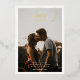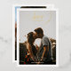 A beautiful save the date card with a simple white border and elegant typography. Features two large, portrait orientation photos, showcasing your special moments shared together. The oversized calligraphy script that bleeds over the photo and border adds a touch of drama and romance, while the minimal layout ensures a stylish and modern aesthetic. Perfect for couples seeking a trendy yet classic wedding announcement. Your guests cherish this unique two-sided design and it will set the tone for your beautiful wedding day.