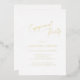 Style classique Invitation de partie d'engagement avec "partie d'engagement" dans un script délicat. Tous les éléments de conception sont en feuille d'or. Un agencement simple sans aucun graphisme en fait un design élégant et intemporel, parfait pour une fête de fiançailles formelle.