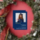 Simple Grad 2025 Photo Graduation Marine Gold Real Foil. Élégance classique avec véritable feuille pour la typographie Grad, sous votre photo, et aussi pour votre "Elle l'a fait ! Faisons la fête" avec le reste du texte en blanc sur un arrière - plan bleu marine. Personnalisez facilement le texte et remplacez l'exemple de photo par le vôtre.
