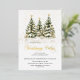 Invitation vos invités de fête de vacances dans le style, qu'ils soient famille, amis ou collègues de travail - ce design fonctionne pour des événements décontractés ou d'entreprise! Le design présente une aquarelle illustrant trois pins décorés d'étoiles dorées. Les détails de votre événement apparaissent ci-dessous avec "Christmas Party" en lettres or chic.