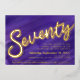 Soixante-dix simples griffés art moderne violet peint arrière - plan avec un texte de feuille d'or ou votre propre couleur de feuille se superposent. Personnalisez cette 70e anniversaire script art jalon invitation anniversaire avec vos propres détails de fête d'anniversaire, et une photo de votre fille d'anniversaire au verso. D'autres années couleurs et articles correspondants sont disponibles. © Design original par Sarah Trett pour www.mylittleeden.com sur Zazzle.