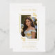 Spanish Elegant Photo Quinceañera in Yellow Floral Frame Metallic Foil Save the Date Card.