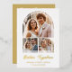 Stylish Arch 3 Photos Elegant Wedding Anniversary Gold Metallic Foil Invitation Card as a Time Life Glamourous Illustration.