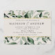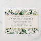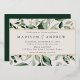 Elégante invitation à un mariage botanique avec une aquarelle verte et feuille d'or bordant vos détails mariages avec un arrière - plan crème. Les invitations de mariage verdoyantes modernes s'inversent pour montrer un arrière - plan vert foncé solide. Conçu pour coordonner avec notre collection de mariages de verdure Abondante.