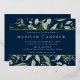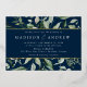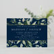 Élégantes invitations de mariage botanique avec aquarelle verte et feuille d'or bordant vos détails mariages avec un arrière - plan de marine. Les invitations de mariage verdoyantes modernes s'inversent pour montrer un arrière - plan bleu marine solide. Conçu pour coordonner avec notre collection de mariages de verdure Abondante.