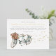 Belle et romantique faire-part de mariage avec feuille dorée brillante, avec un vélo en tandem vintage aquarelle et un panier de fleurs.